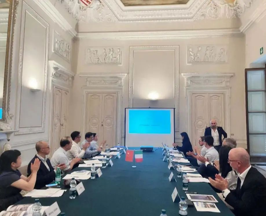 2023年9月20日,南京市委常委、市委秘书长蒋跃建率队来访中意设计交流中心佛罗伦萨基地,并与意大利文创产业专家教授企业代表举行座谈会。